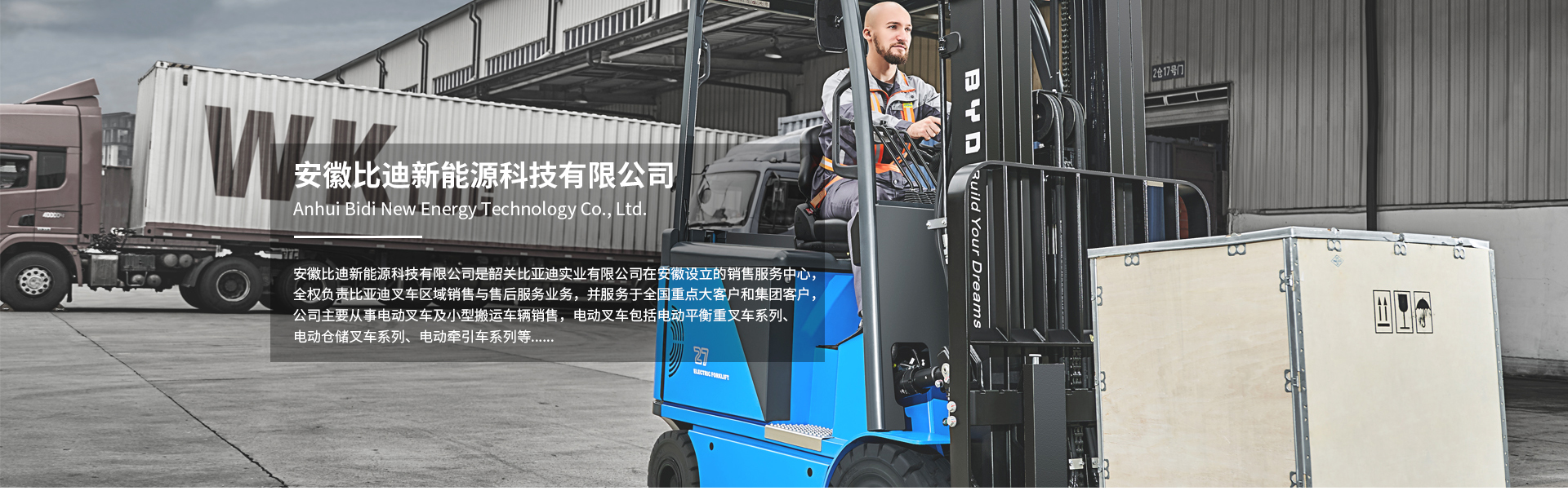 安徽比迪新能源科技有限公司是韶關(guān)比亞迪實(shí)業(yè)有限公司在安徽設(shè)立的銷售服務(wù)中心,全權(quán)負(fù)責(zé)比亞迪叉車區(qū)域銷售與售后服務(wù)業(yè)務(wù),并服務(wù)于重點(diǎn)大客戶和集團(tuán)客戶,目前已經(jīng)形成成熟穩(wěn)定的銷售服務(wù)團(tuán)隊(duì)。安徽比迪堅(jiān)持奉行“客戶導(dǎo)向,誠(chéng)信為本、信譽(yù)為上”的宗旨,注重企業(yè)品牌建設(shè)和質(zhì)量誠(chéng)信建設(shè)。公司主要從事電動(dòng)叉車及小型搬運(yùn)車輛銷售,電動(dòng)叉車包括電動(dòng)平衡重叉車系列、電動(dòng)倉儲(chǔ)叉車系列、電動(dòng)牽引車系列等。電動(dòng)叉車應(yīng)用領(lǐng)域非常...